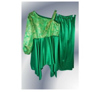 Green Satin Overlay w/brocade waistband 2X 45″ bust -Superposición de satén verde con cinturilla de brocado, busto de 2X 45″