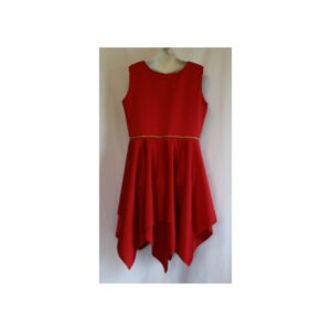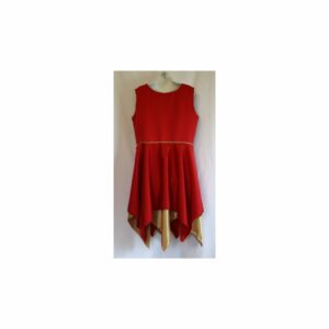 Red/Gold Cross Brocade w/Double Satin Skirts & Gold Waistband – Brocado cruzado rojo/dorado con faldas de satén doble y cinturilla dorada