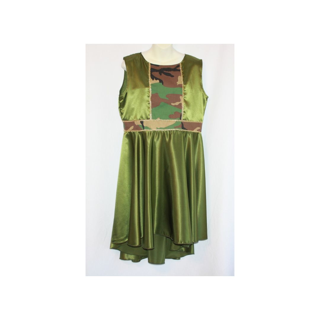 Olive Green Olive Camo Overlay w/High Low Skirt, matching pants can be added to order, Straight Leg, Wide Leg Dance or Palazzos.